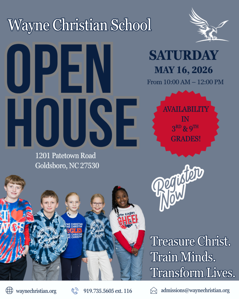 New Families: We are currently accepting initial admission review applications, and the full application will open in mid-February. Please contact the admissions office at 919-735-5605 ext. 124 or admissions@waynechristian.org to start your admissions process.
